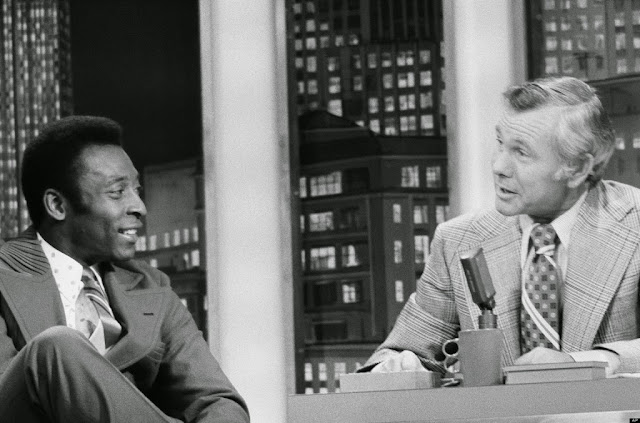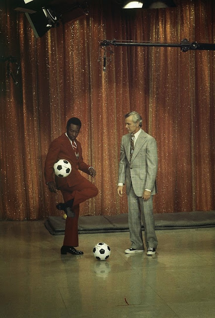 Pelé dá algumas dicas a Johnny Carson sobre como chutar uma bola de futebol:-) Este programa foi gravado em 9 de maio de 1973, quando o Rei esteve nos EUA a "espalhar o evangelho" do futebol. No dia anterior, Pelé foi recebido na Casa Branca pelo presidente dos Estados Unidos, Richard Nixon ( ver AQUI).